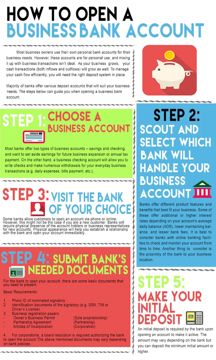 Founders Guide created a helpful infographic detailing the step-by-step process of opening a business bank account: