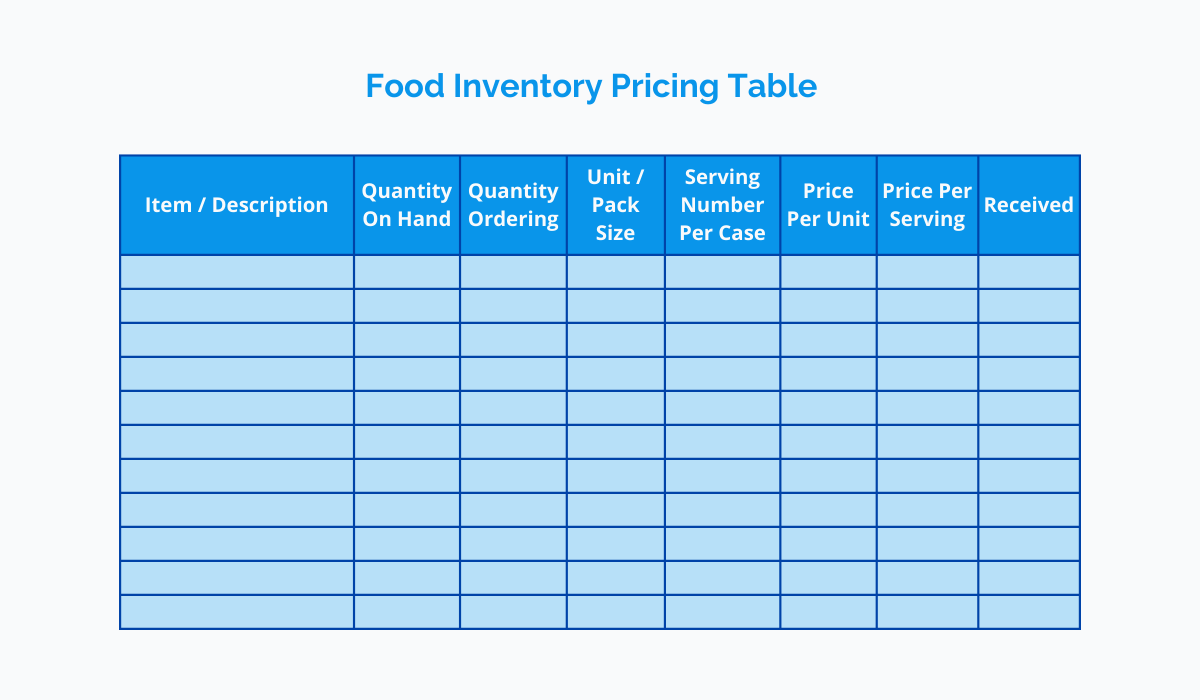 To manage these costs effectively, we recommend using a food inventory pricing table like the one shown above.