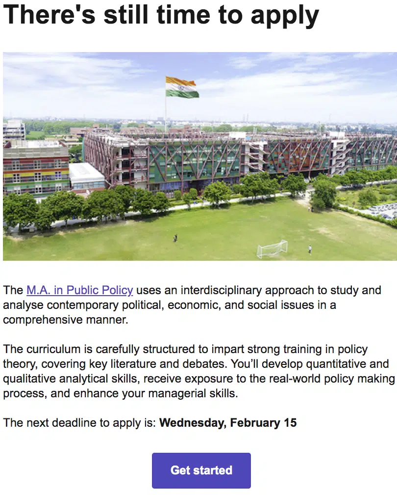 They’d then create one email marketing campaign for cold leads who have yet to apply and another for potential students who’ve already applied.
