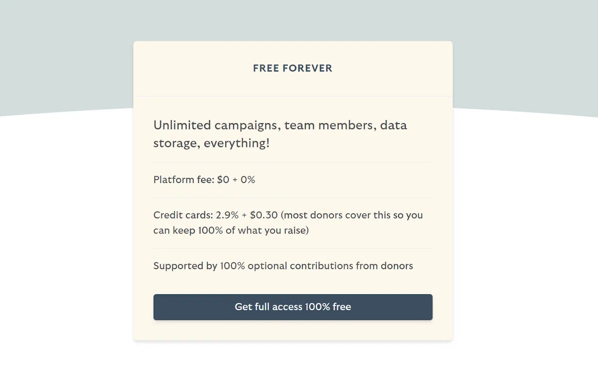 Free Forever unlocks access to all major fundraising features, such as crowdfunding, auctions, raffles, live streaming and online stores.