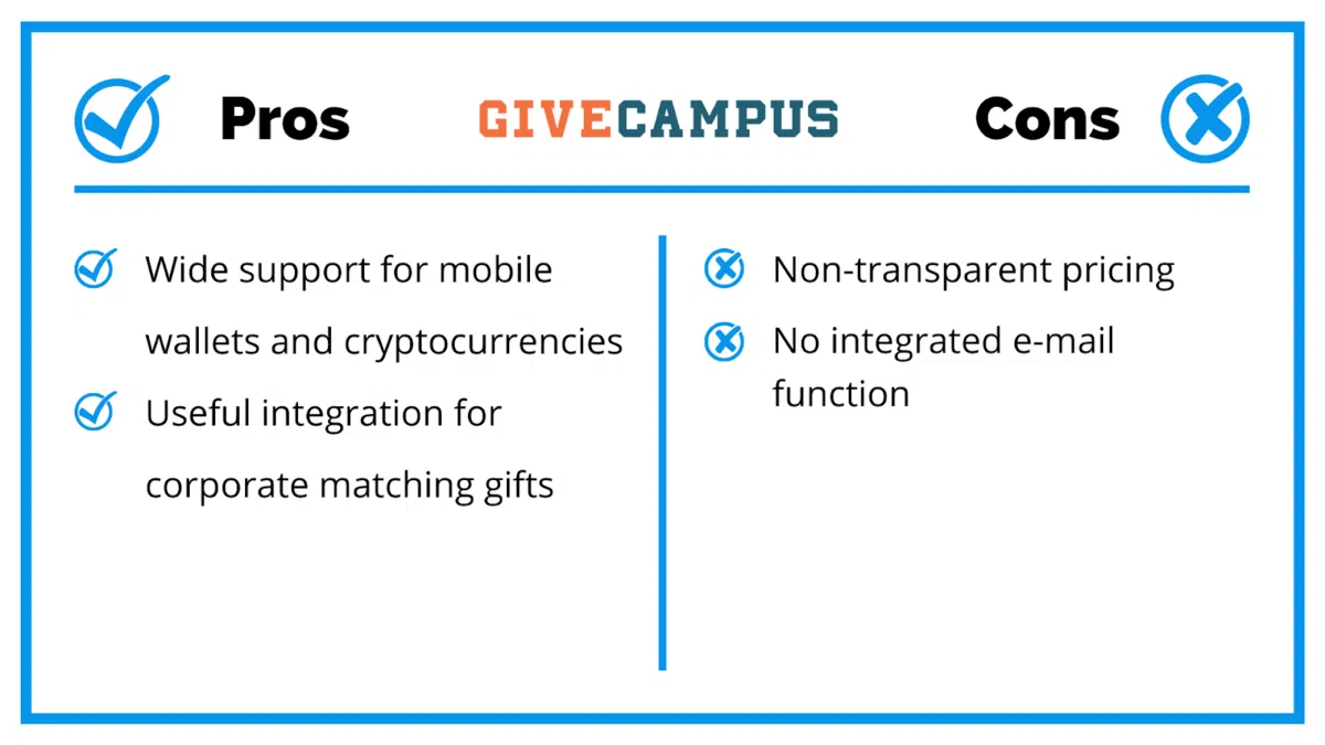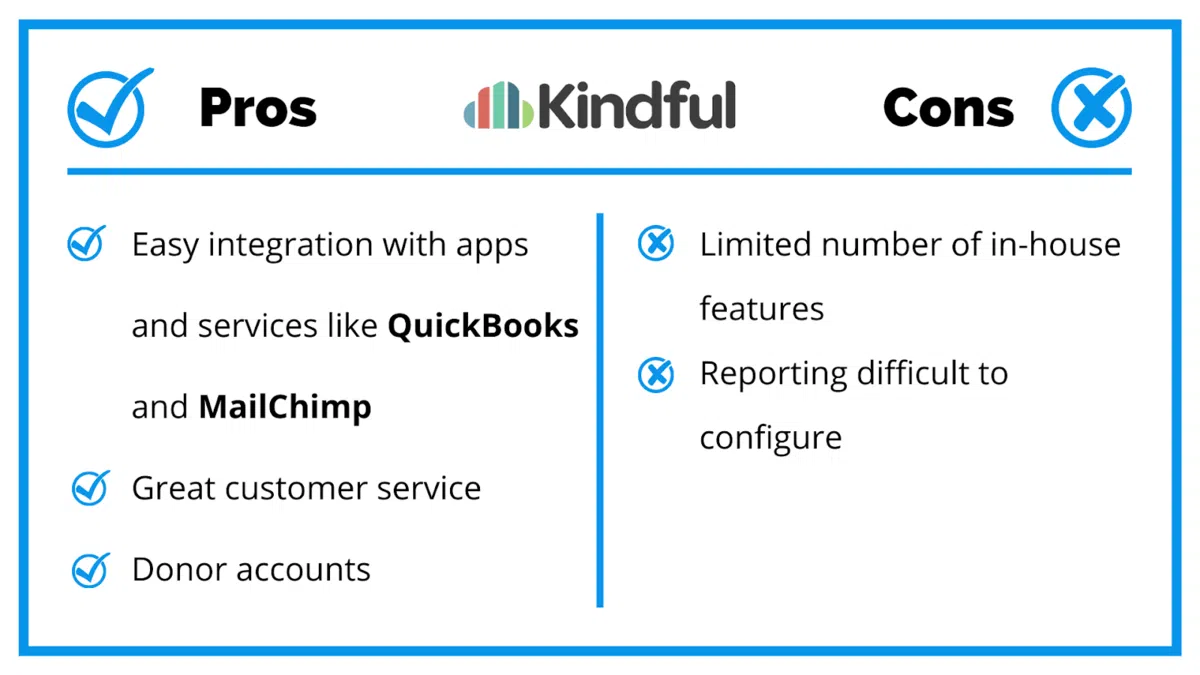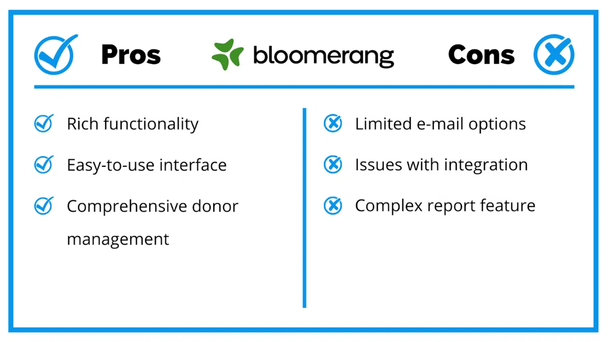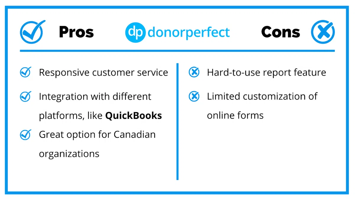 Here are a couple of benefits and drawbacks to choosing DonorPerfect.