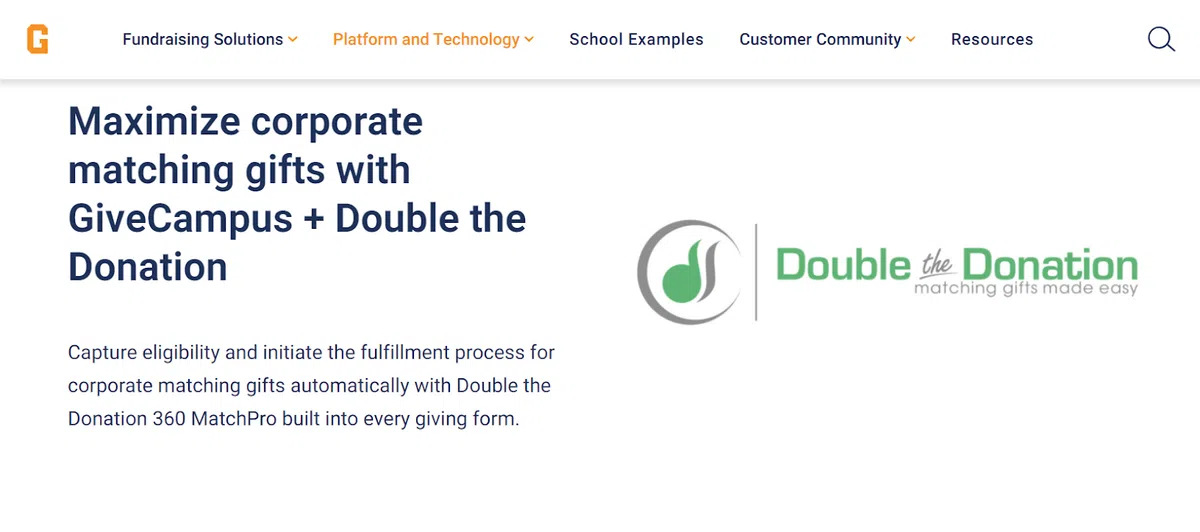 The fundraising section shares some key points of the previous platform, Kindful. For example, it too provides donor accounts and corporate gift-matching options.