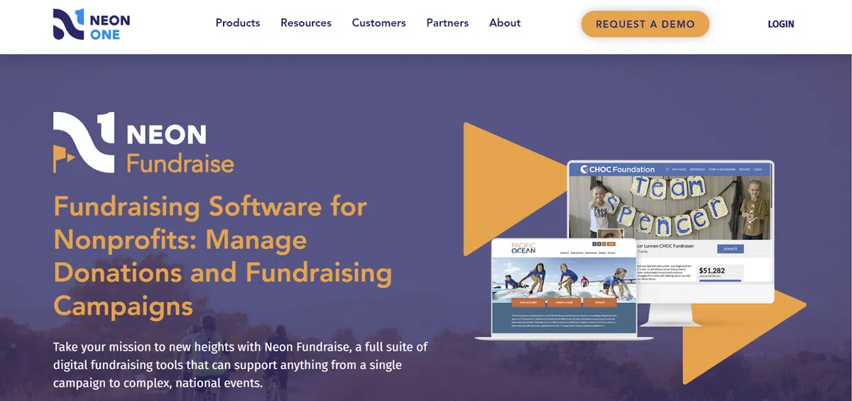Neon Fundraise is part of the NeonOne platform, a software suite covering donor management, website building, customer communication, and fundraising.