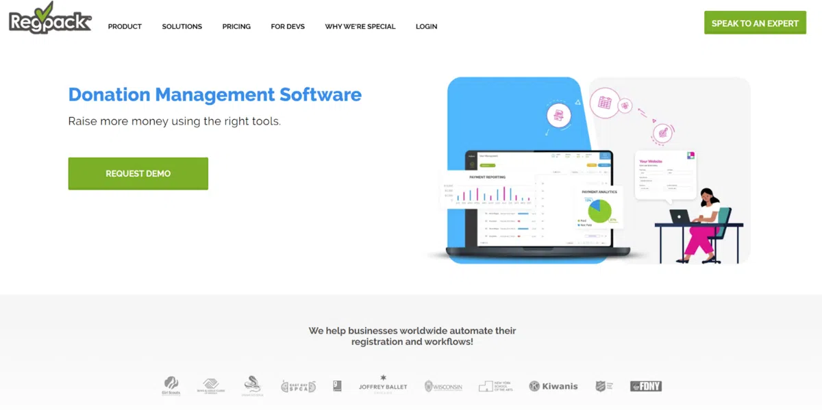 Regpack is a feature-packed registration platform you can use to set up donation drives and fundraising events with ease.