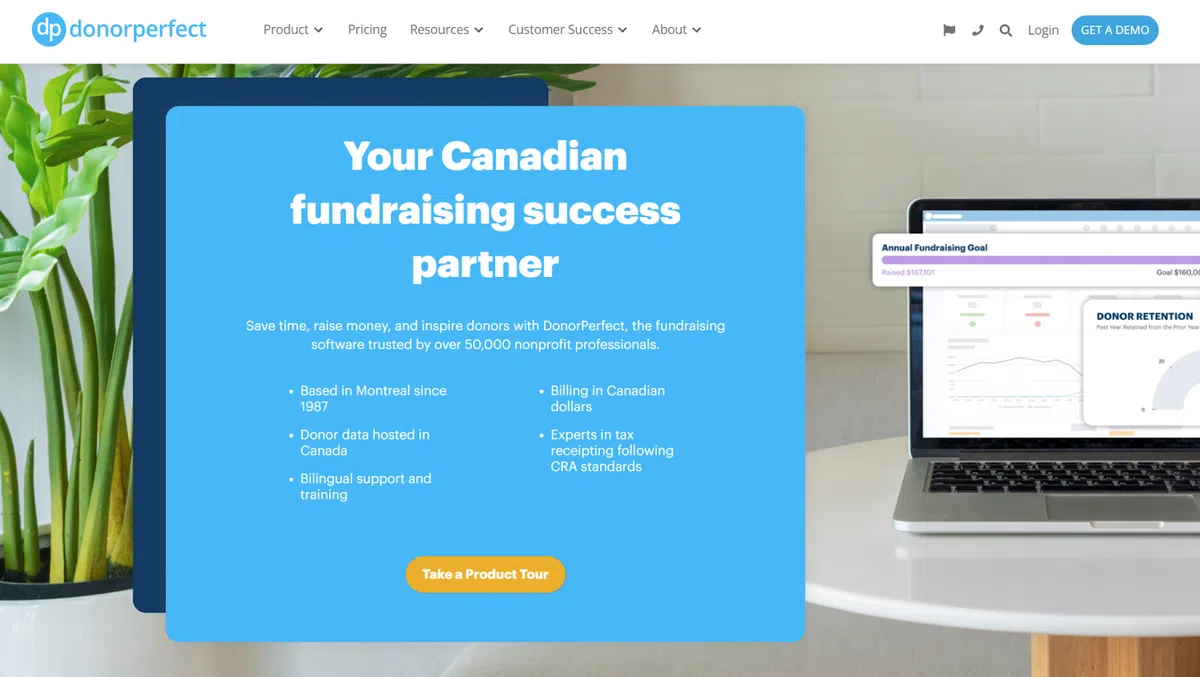 Based in Montreal, DonorPerfect caters to Canadian educational institutions by providing billing in Canadian dollars, tax receipting according to CRA standards, and bilingual support and training.