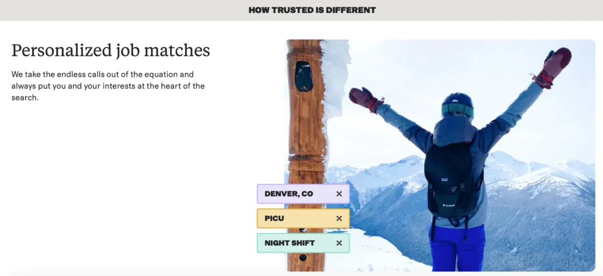 For example, here’s a company that does a great job differentiating themselves. Trusted Health helps travel nurses and other health professionals find jobs.