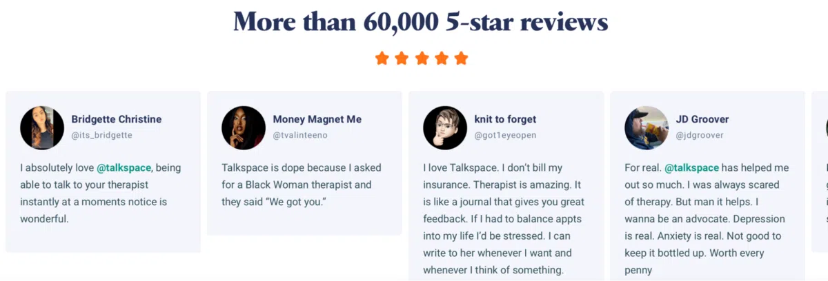 These reviews show real people who have benefited from speaking with Talkspace therapists.