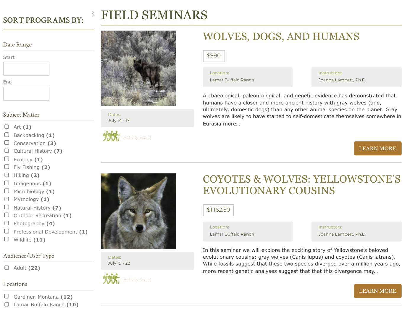 Some examples of services that businesses sell online are after-school programs, summer camps, and businesses that sell experiences, like guided tours in Yellowstone: