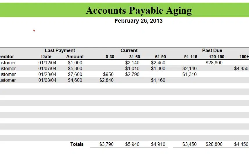 They’ll see, for example, that in 31-60 days, they’ll have to pay $5,940 to their vendors, meaning they better not purchase something in the meantime that puts them in a tricky financial situation when payment comes due.