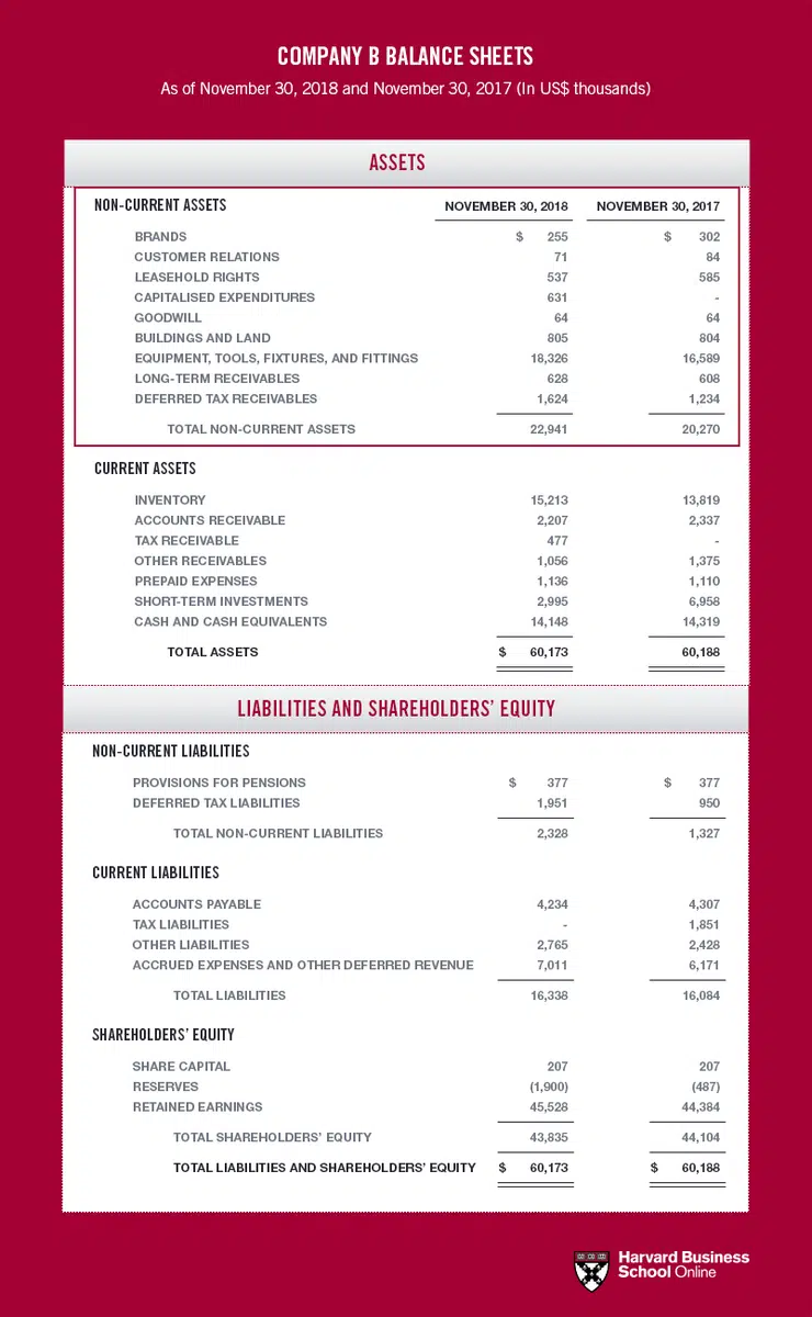 Now, let’s take a look at an example balance sheet and try to assess the company’s financial health using the two ratios we just discussed.