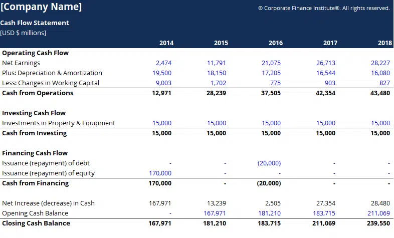 In the above case, the company has operated at a positive cash flow for the past five years—generally a good sign.