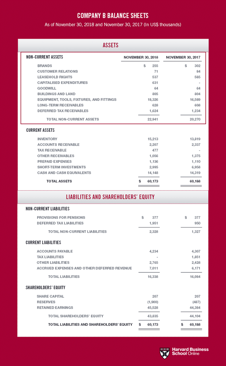 Now, let’s take a look at an example balance sheet and try to assess the company’s financial health using the two ratios we just discussed.