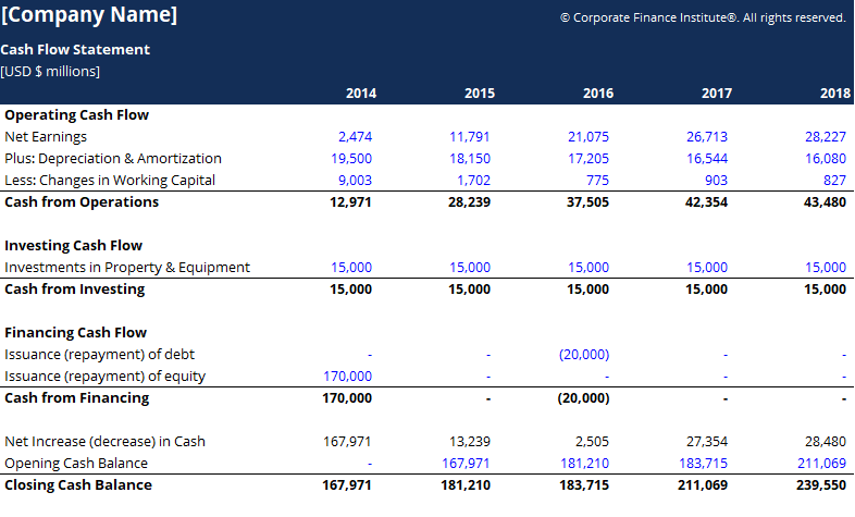 In the above case, the company has operated at a positive cash flow for the past five years—generally a good sign.