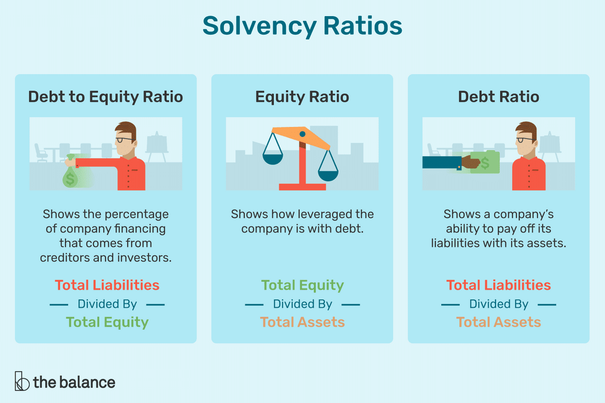 There are some other specific solvency ratios you can use to shed more light on particular aspects of your company’s solvency, such as the debt-to-equity ratio, equity ratio, and debt ratio.