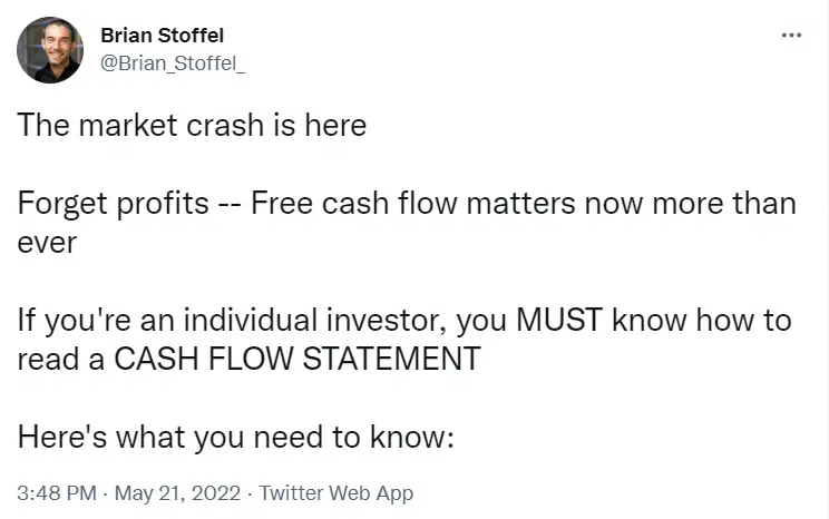 Financial journalist Brian Stoffel recently tweeted that free cash flow matters now more than ever.