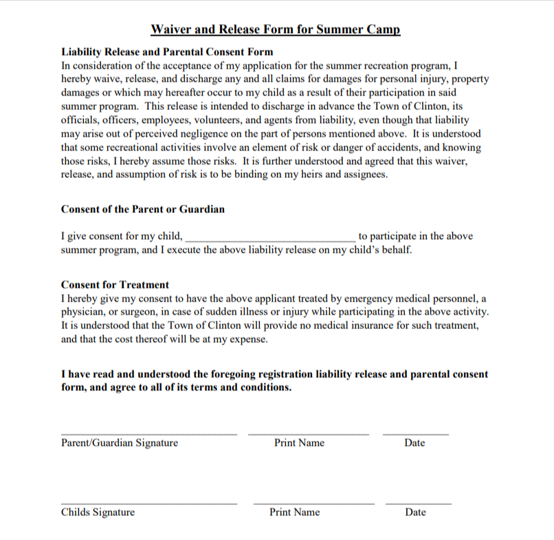 After all, each camp is differently organized, and the laws vary from state to state, so it’s definitely a safer choice to create your own release form with the help of your legal counsel.