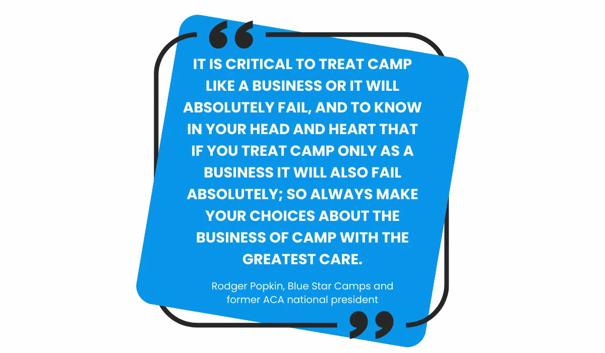 That being said, your camp still is a business, and it should be treated as such. Rodger Popkin, the owner of Blue Star Camp, put it best when he said: