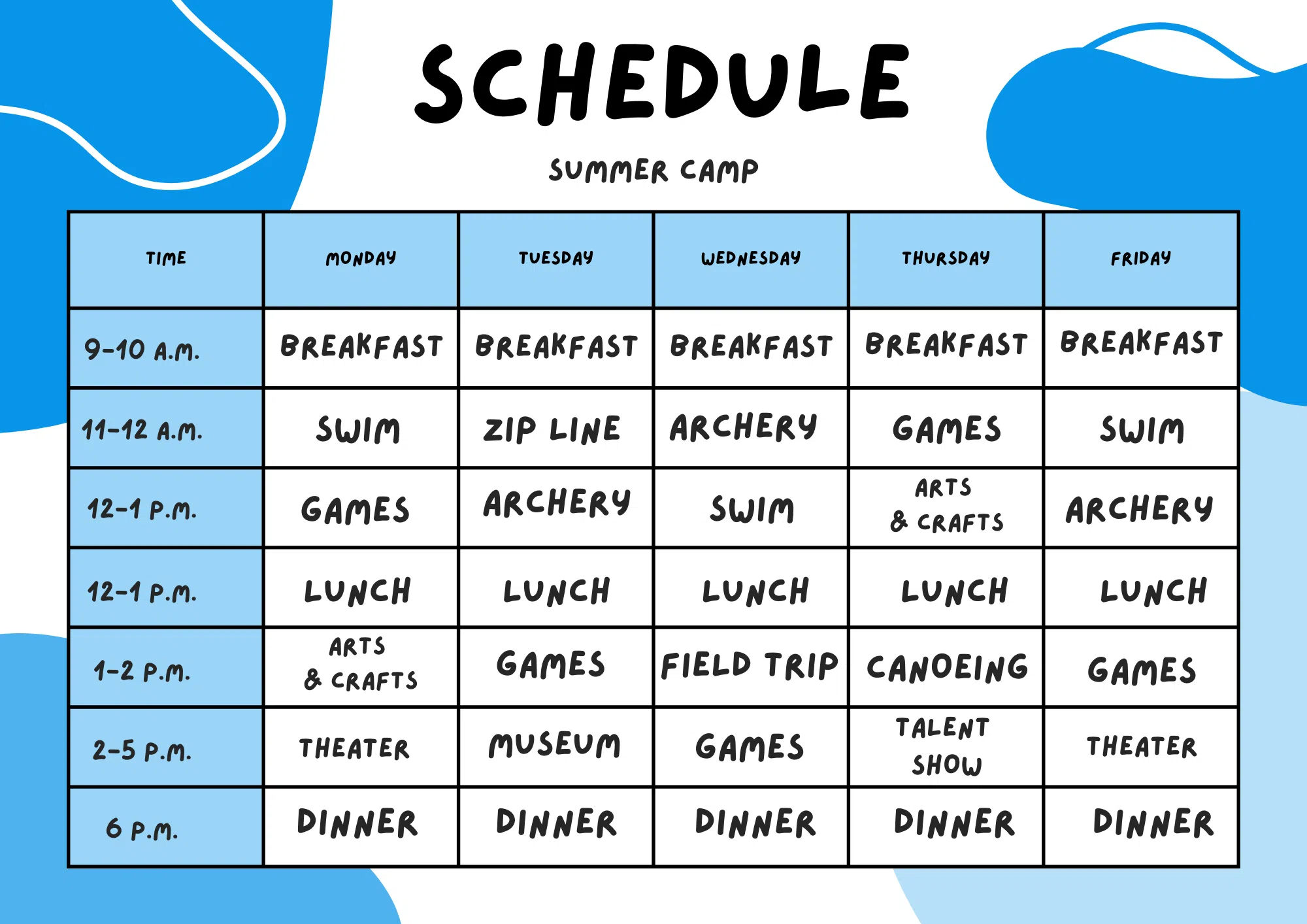 Either way, having a clear schedule is a must. It will help you and your team remain organized, and it’ll provide campers with structure and consistency while ensuring they remain engaged and have fun throughout the whole experience.
