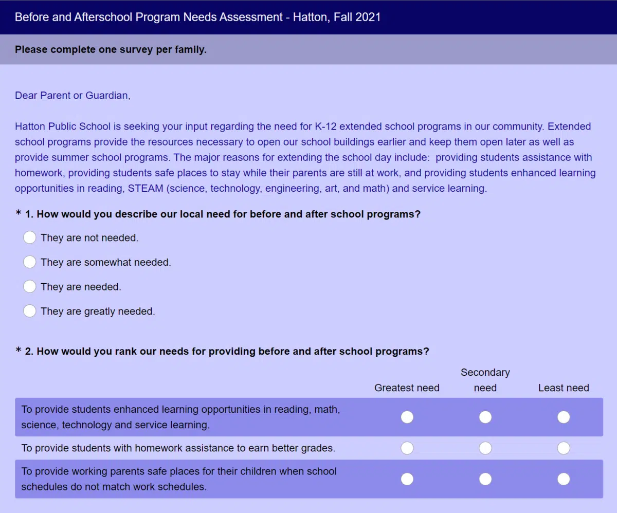 If you are unsure of what to include in your research, there are many needs assessment templates available online, like this one by SurveyMonkey: