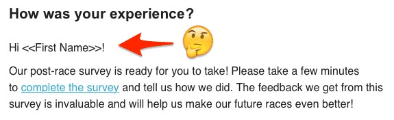 You don’t want your email to read “Hi <<First Name>>!” like this one does: