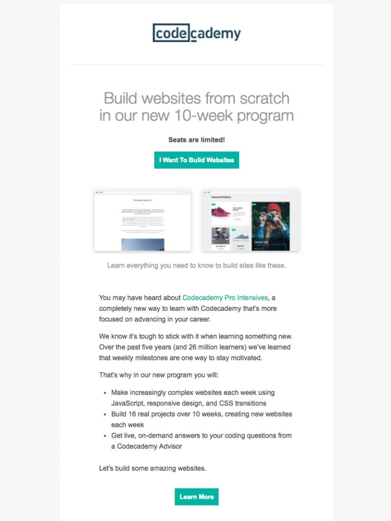 This email from Codecademy is a great example: