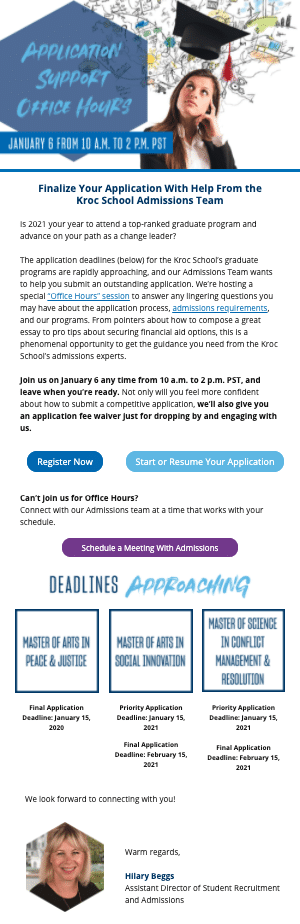 This email from the University of San Diego Kroc School is a great example: