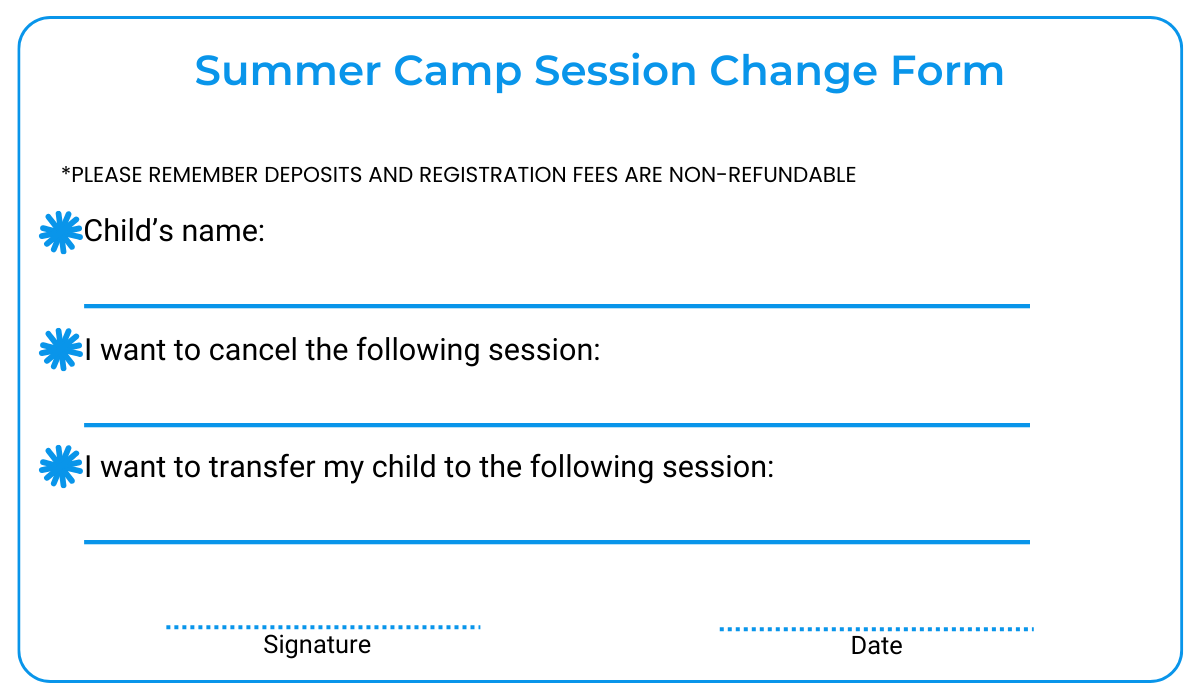 Summer camps sometimes even charge a late arrival fee, so if this applies to your camp, too, let the families know.