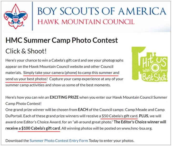 The results of such contests, i.e., the winning photos, can be posted on your organization’s website to advertise the camp’s program offer and used in other marketing materials to attract new and repeat campers.