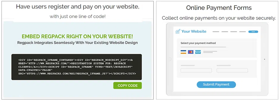 What separates Regpack from other comparable software solutions is that you embed these processes right on your website, thus creating a truly seamless user experience where parents never have to leave your website to register or pay using a third-party provider.