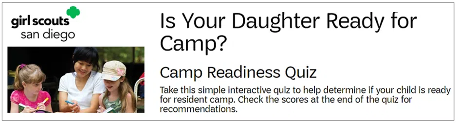 For example, if you’re a parent unsure whether your kid is ready for a resident (overnight) camp, you’ll probably google something like “sleepover camp readiness quiz.”