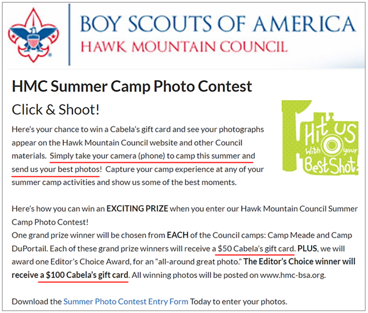 The results of such contests, i.e., the winning photos, can be posted on your organization’s website to advertise the camp’s program offer and used in other marketing materials to attract new and repeat campers.