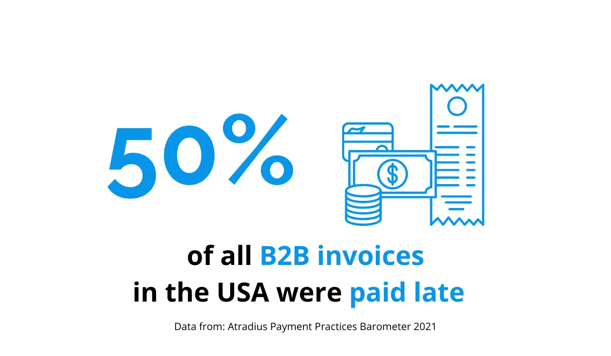 The Atradius Payment Practices Barometer 2021 found that 50% of all B2B invoices issued in the US in the first half of 2021 were paid late.
