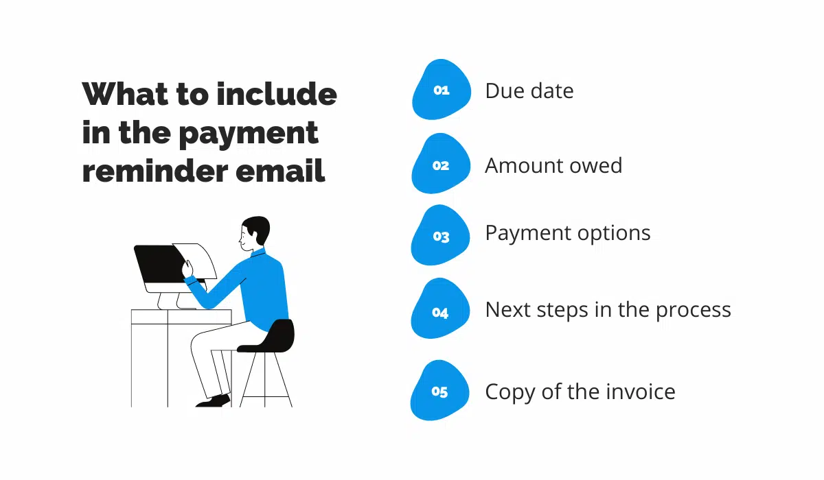 In addition to including the essential details, such as the due date, amount owed, and payment options in the reminder, it’s helpful to attach a copy of the invoice in the payment reminder email.