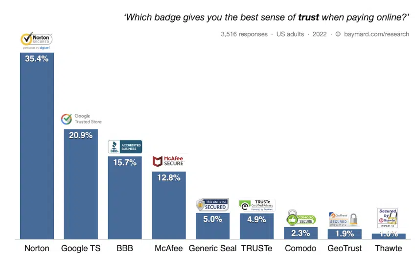 According to Baymard, SSL seals, like Norton, are the ones most trusted by customers.