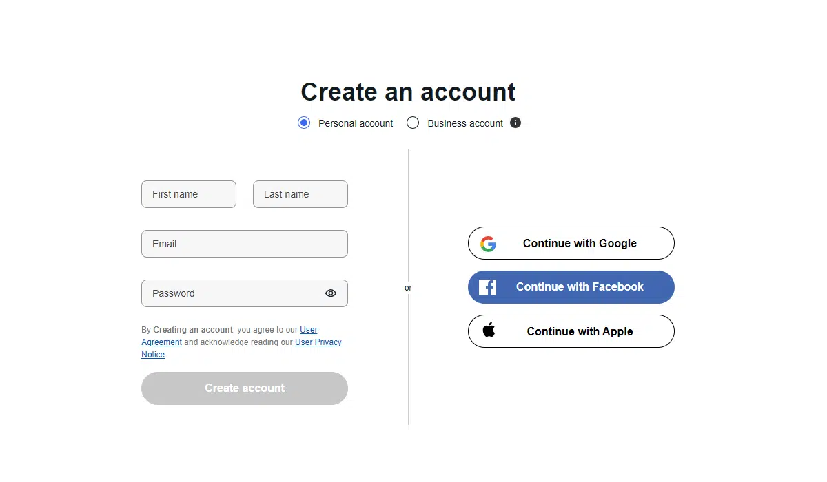 Additionally, users can log in using Google, Facebook, or Apple. Therefore, new eBay users have four easy options to choose from when signing up.