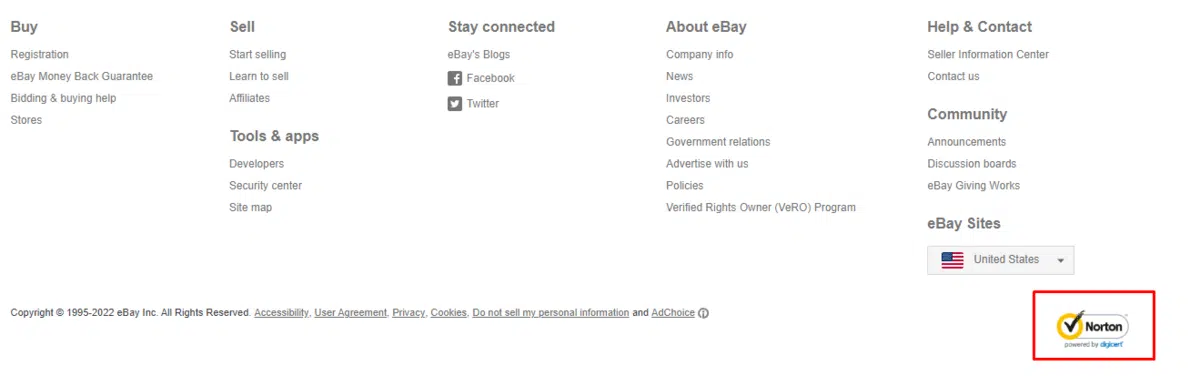 The Norton security seal will be visible in the lower right corner of any eBay page you visit, reminding you of how safe the site is.