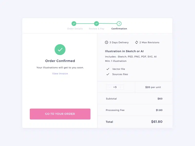 Here’s a sleek example of an order confirmation screen to give you a better idea of what it can look like.